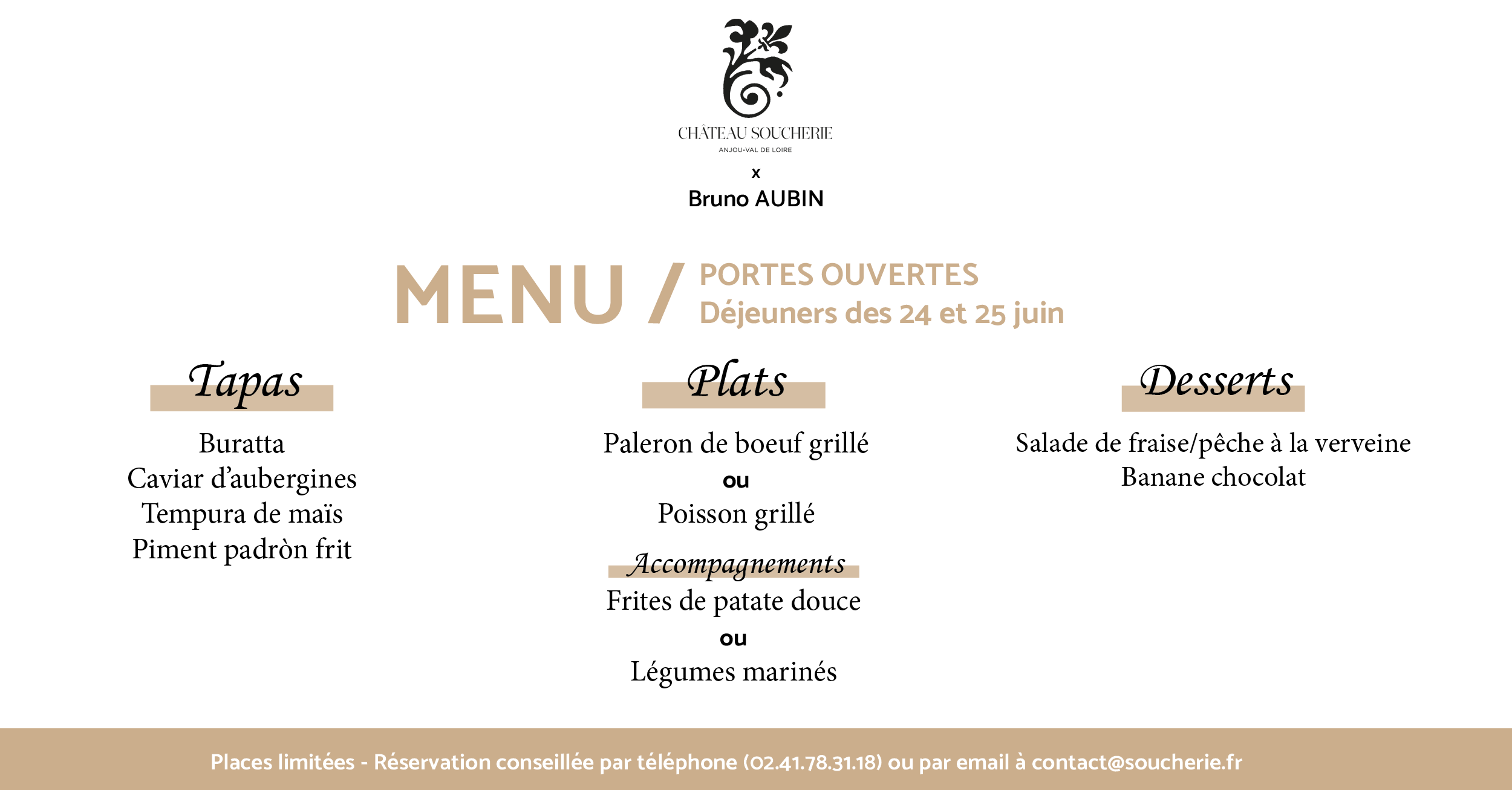 Portes Ouvertes Château Soucherie Menu 2023